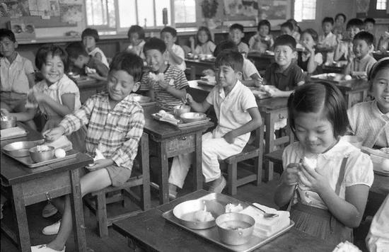 1954年,日本政府颁布《学校供餐法》,规定幼儿园和义务教育阶段的学校(小学和初中)必须向学生提供午餐,供餐目的也由“欠食儿童对策”转向“增强儿童体魄,提高民族素质”。由此,财政比较差的地方政府也通过中央政府拨款和国家补贴实现了完全、充足的供餐,现代学校供餐制度正式确立。