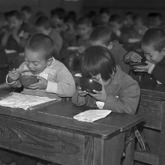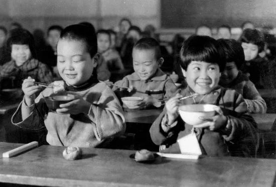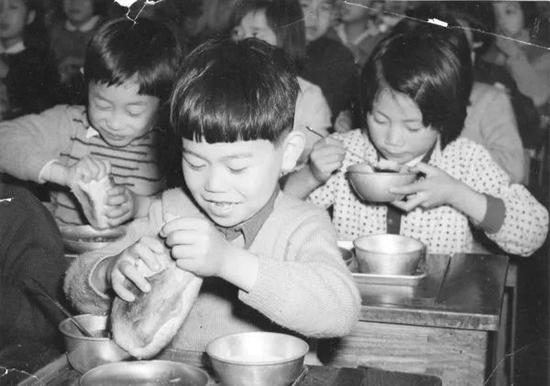 那时,午餐是一天的主餐。在家附近上学的孩子们通常回家吃午饭,离得较远的农村地区通常要自己带食物到学校,也有家长给孩子零用钱让孩子自己去买午餐,贫困家庭的孩子则只能吃咸菜或者挨饿。