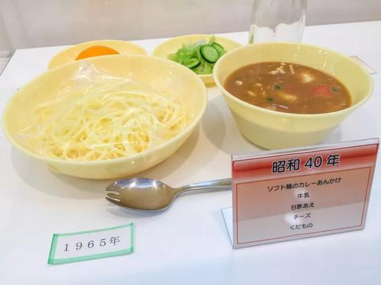 之后随着日本经济的快速发展,摆脱了对外援的依赖,更多的日本本土食物出现在了学生的饭桌上。1965年(昭和40年)的午餐是一个例子。