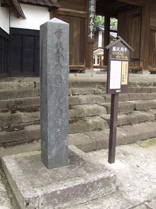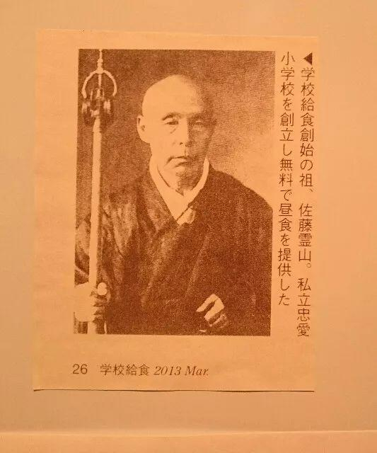 明治22年(1889年),建立了日本山形县鹤岗町私立忠爱小学校的大和尚们开始为带不起饭盒上学的孩子们提供饭团、烤鱼、咸菜,这被视为日本学校给食制度(集体供餐制度)的开始,忠爱小学还为此特立了“给食开始学校”之碑以资纪念。
