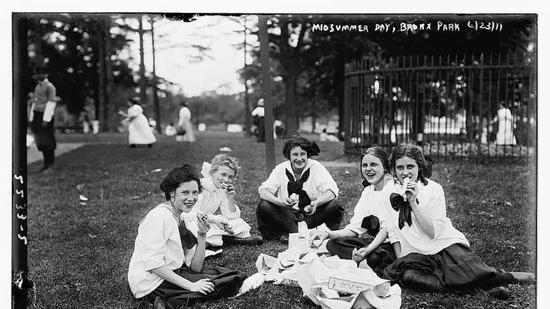 纽约佩勒姆湾公园野餐的高中女生,1911年