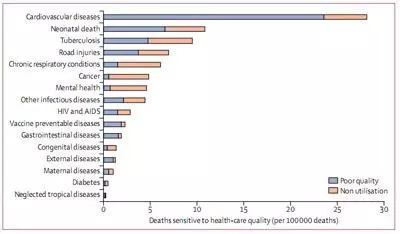 2016年,860万可预防性死亡人数中,超过100万新生儿和结核病患者死于劣质医疗。研究显示,劣质医疗致死率因病种不同而有所差异:心血管病为81%;接种预防性疫苗患病,81%;新生儿疾病,61%;妇科病、道路交通事故伤残、结核病、艾滋病及传染性疾病,共为50%。