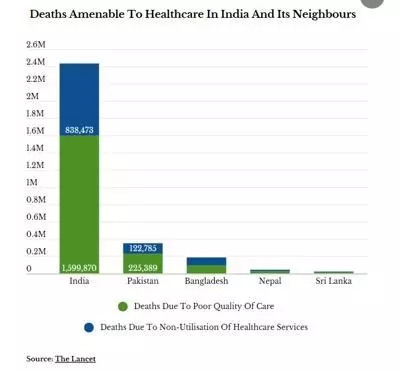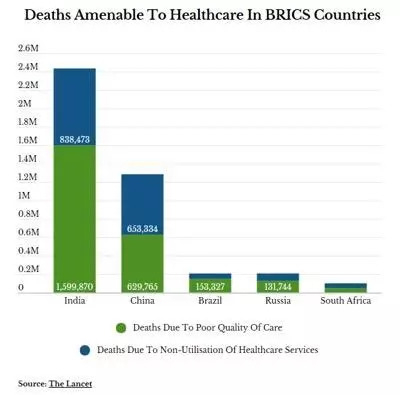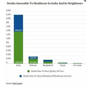 2018年9月5日,《柳叶刀(全球医疗)》(Lancet Global Health)发表报告《全民医保时代:患者死亡的元凶竟是劣质医疗——对137个国家可预防性死亡的系统分析》(Mortality due to low-quality health systems in the universal health coverage era: a systematic analysis of amenable deaths in 137 countries)。报告显示,印度是137个国家中医疗情况最糟的——每年大约240万人因治疗不善而丧命。