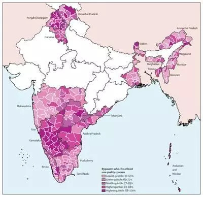 医疗机构服务态度差,进一步促使人们选择他处就医。《柳叶刀(全球医疗)》委员会援引了印度家庭和卫生福利部(Ministry of Health and Family Welfare,MoHFW)的《各县家庭和医疗机构调查》(District Level Household and Facility Survey)结果,发现印度51%的家庭选择到私人医疗机构就医,而且80%的家庭都给出了至少一条对医疗质量不满的理由。