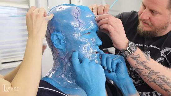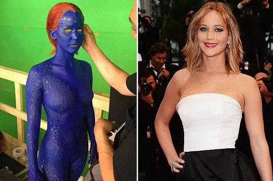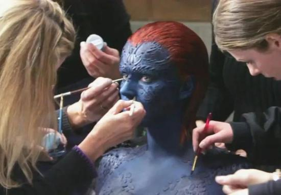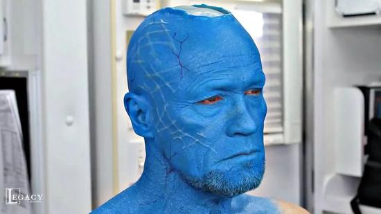 大表姐版的魔形女,也是全身涂蓝,曾经还因为颜料影响到了健康一度传出辞演的消息: