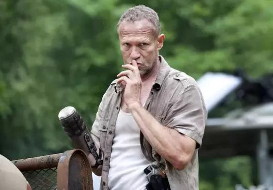 迈克尔在《行尸走肉》中饰演弩哥的哥哥莫尔·迪克森,化过丧尸妆: