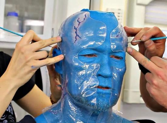 迈克尔表示这套妆需要四个半小时完成,化妆时他基本是睡着的,而且完成后跑步、健身、出汗都不会掉色。