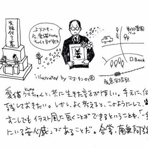 目前,日本人的“生前葬”正在流行,树木希林的病逝也成为了被关注的热点。不过,话虽然这么说,但我对爱猫阿熊过世时的悲伤至今都没能消除。