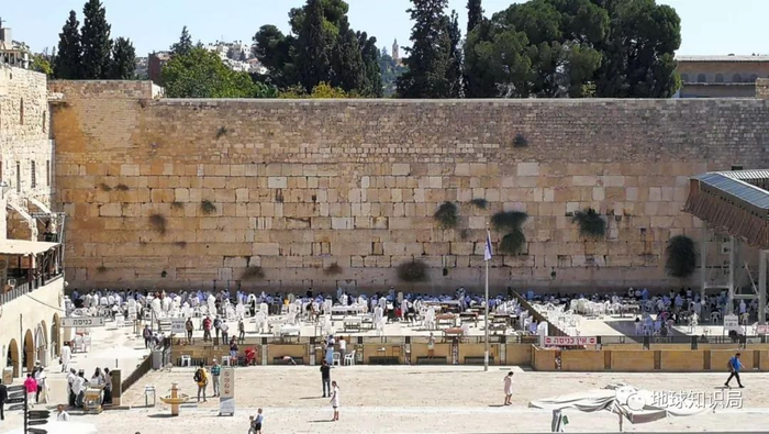 耶路撒冷西墙(哭墙)前着白袍忏悔的犹太人,摄于2018年