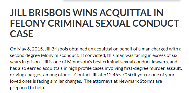 “Jill是明尼苏达州最好的性犯罪律师之一”