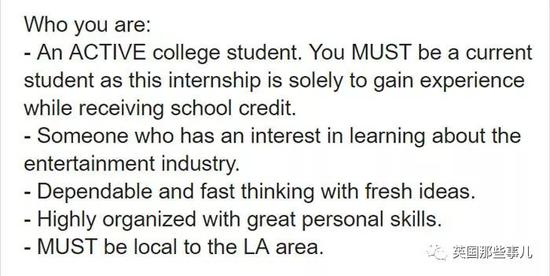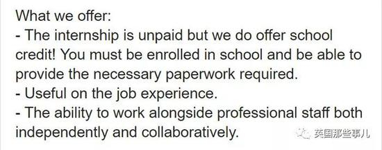 现在必须是在读学生,这是一份无薪的实习工作,你能得到的只有学校的学分。