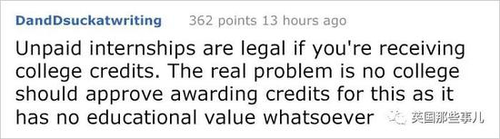 “如果能得到大学学分,无薪实习是合法的,但问题是,没有哪个大学会给这种实习工作学分吧?完全没有任何教育价值”