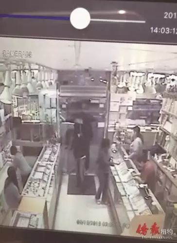 华埠包厘街80号的国际珠宝行遭抢劫的监控录像画面。