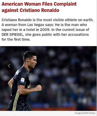 2017年,《明镜周刊》就报道过这一消息,并表示C罗为此事向该女性支付了封口费。C罗经纪人门德斯创办的经纪公司则表示,这篇报道“纯属虚构,并称这一指控恶心而过分”。