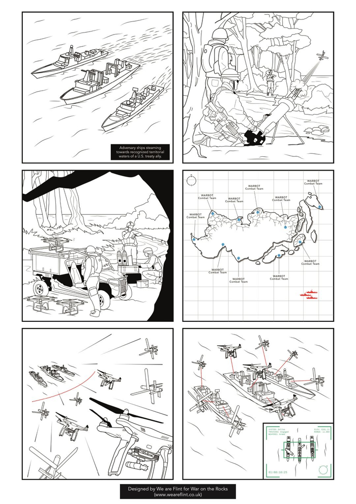 根据危机的不同,政策选择可能与刚刚描述的情景相似:帕特里克•克罗宁(Patrick Cronin)和亨特•斯蒂雷斯(Hunter Stires)的海上反叛乱运动、埃尔布里奇•科尔比(Elbridge Colby)和乔纳森•所罗门(Jonathan Solomon)的“威慑拒止”,或者可能是执行t.x•哈梅斯(t.x Hammes)提出的“海上控制”战略。在后一种情况下,数十家已经在“接触”内的作战机器人将进入位置,以帮助海军和美国的盟友及合作伙伴,为决策者争取空间和时间。
