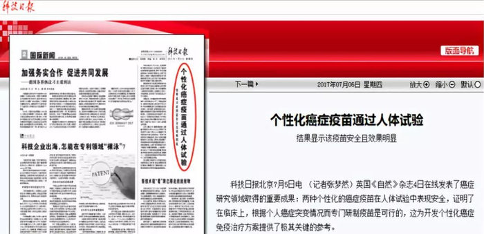 2017年,美国个性化癌症疫苗首次人体试验交出“成绩单”:6名黑色素瘤患者在接注疫苗2年后,4人没有复发。