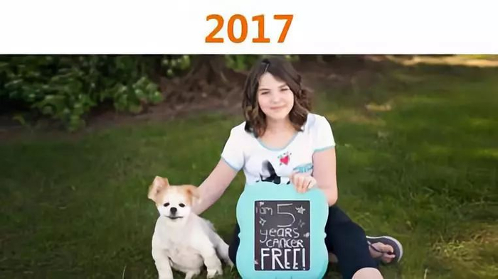 一年后她去复查,已经是one year cancer free,身体里没有任何癌细胞了。后来,每一年她都会拍一张这样的、甜甜的照片,放在她的个人网站上。