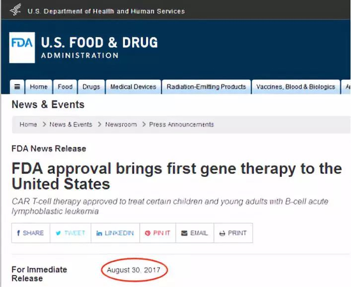 2017年8月,一种“最有可能治愈癌症”的全新疗法在美上市。由于太具“碾压性”,研发方甚至表示可以“无效退款”。