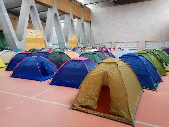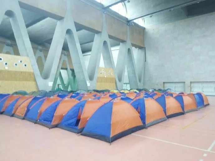 下图是北洋园校区体育馆已经搭建好的帐篷实景喔。