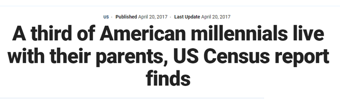 ▲美媒报道指出,在18-34岁的美国年轻人中,有1/3和父母住在一起,需要父母经济资助(via Fox News)