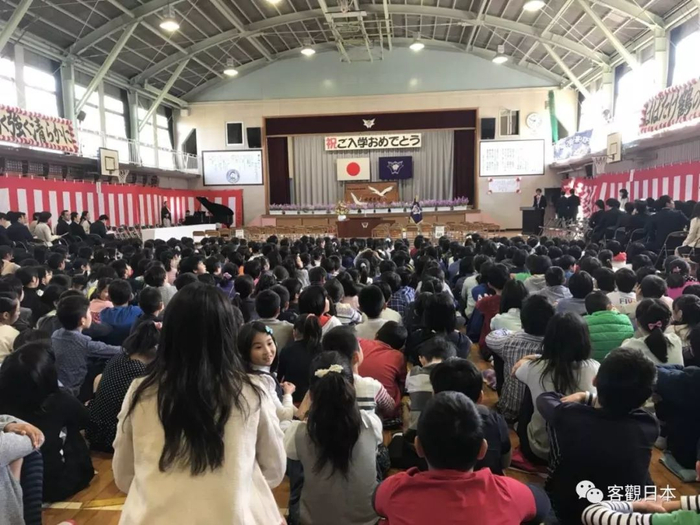 开学典礼时学生们也是席地而坐在体育馆