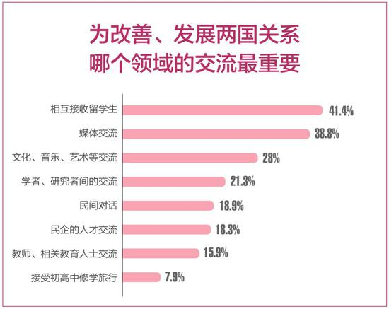 近几年中国公众对日本的印象逐渐改善,有访日意愿的比例继续增加,但总体上绝大多数中国公众尚不具有亲身体验日本的经历和直接与日本人交往的经验,未来中日民间交流具有广阔的发展空间。中国公众看重民间交流,对过去一年民间交流的肯定性评价增加。相互接受留学生与媒体对话是最受认可的民间交流方式。绝大多数中国公众认为本国媒体的报道客观公平,对改善中日关系发挥积极作用。
