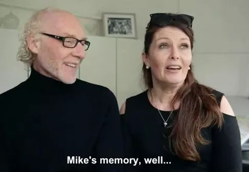 老伴儿也非常支持他。他的妻子说,麦克的记忆力,呃……他连我们的孙子孙女叫什么都记不清。