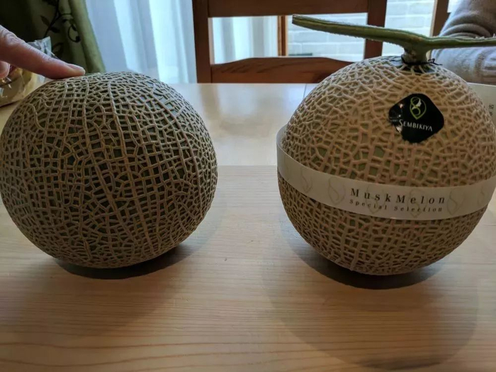 最后,精彩的来了,各位观众!你现在看到的是1600日元( 94 RMB)的哈密瓜和29000日元( 1700 RMB)的Musk哈密瓜!不要怀疑,它就是这么贵!