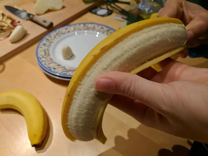 接下来,是 27 日元( 1.5 RMB)普通香蕉和 320 日元( 9 RMB)高级香蕉的大对决。这次从外观来看,基本看不出什么,高级香蕉的个头倒是比较大一些。