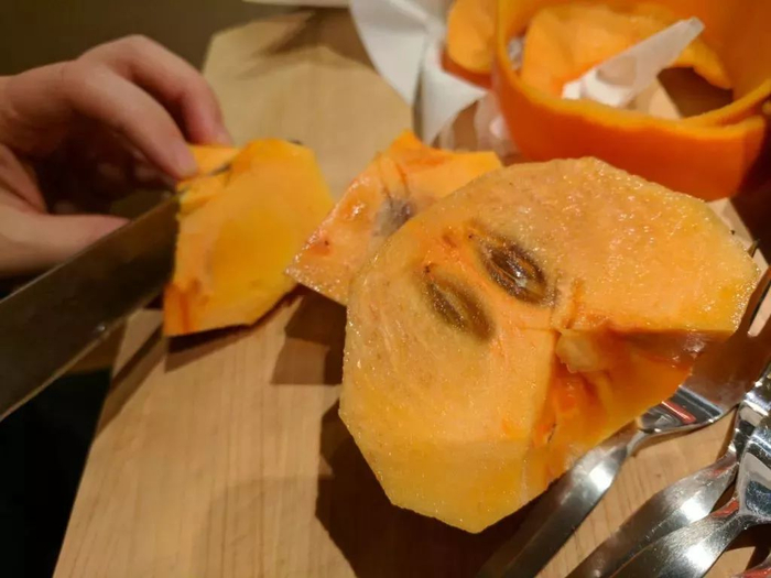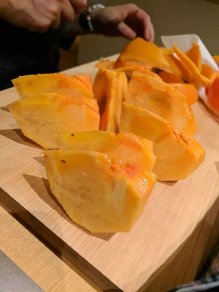 接下来品尝高级柿子,果然水分比平价柿子多出了一倍。通常来说,硬柿子经过人工催熟后,水份都不多,但这款高级柿子跟之前的富士苹果一样多汁爽口!