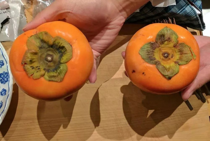 接着,再来比较 54 日元( 3.1 RMB)的柿子与 1000 日元( 59 RMB)的柿子。