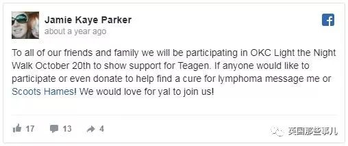 如果有人愿意参与、甚至捐赠以帮助治疗淋巴瘤,请告诉我!希望你能加入我们!”