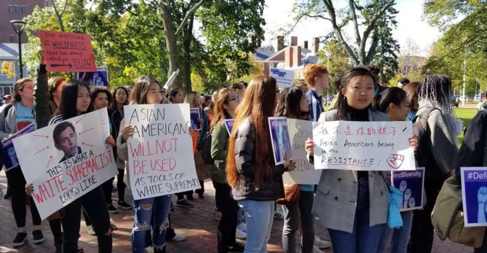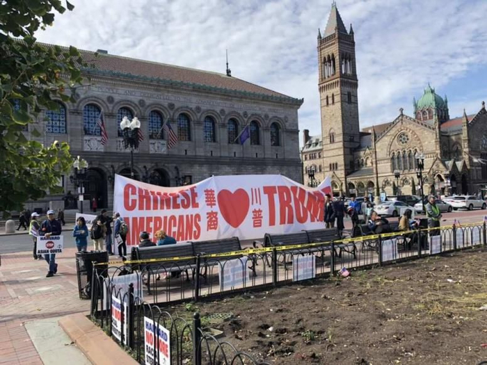 就在同一天,相隔3英里的哈佛广场上,许多哈佛的在校华裔学生也举行了一场集会。参与集会的,还有各种各样的校园团体,其中包括哈佛大学的拉美裔学生、哈佛亚裔美国校友联盟、哈佛黑人校友协会、哈佛伊斯兰协会和本土美国学生。