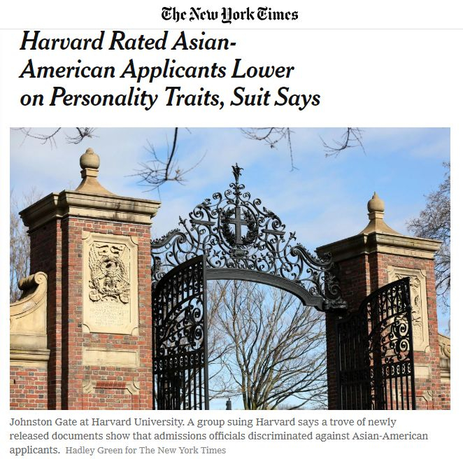 关于哈佛大学歧视录取“亚裔学生”的事件在今年算是闹的沸沸扬扬,甚至称得上是旷日持久。早在今年6月份,主流的英文媒体就已经就此问题发布过多方面的报道,众多探讨让各种问题被暴露在阳光之下。。。。。。今年8月底,美国司法部表达了对亚裔学生及家长的支持,呼吁法院同意受理他们对哈佛大学的歧视指控,还把矛头指向了哈佛大学招生时的评分项。