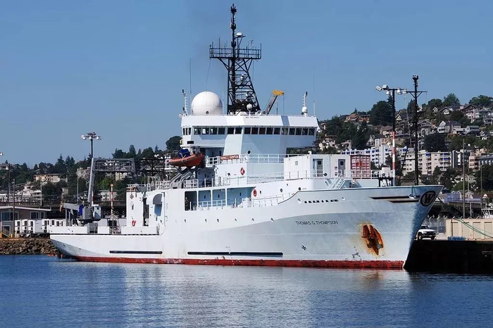 ▲“托马斯”号本身的涂装完全是民船样子,船艏的W字母表示该舰属于华盛顿大学。