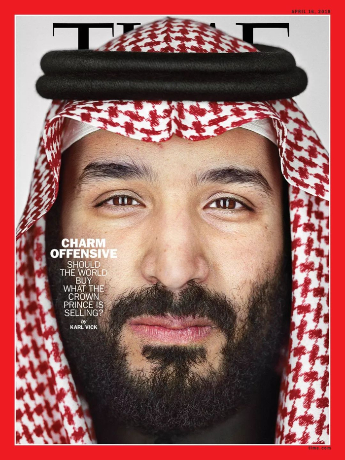 当时《时代》周刊把他放在了封面上,不过文章标题用的是疑问句:“Should the world buy what the crown prince is selling?”