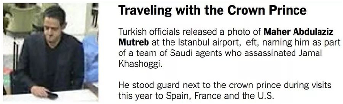 目前《纽约时报》确认其中至少有9人来自沙特国安部门、军队或者其他政府机构。