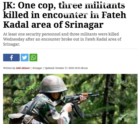 10月17日,印度警察与武装分子在克什米尔首府斯利那加发生火力冲突,冲突造成1名警察丧生,4名警察受伤,另有3名武装分子死亡。此次发生冲突的地点,与本月初两名国会工作人员疑似被武装分子杀害的地点相近。搜捕行动仍在进行。