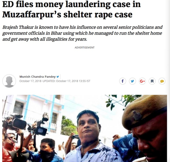 近日,在印度穆扎法尔布尔地区的收容所里,至少34名7至17岁的女孩在被发现遭强奸。在遭性虐前,女孩会被注射麻醉药物而失去知觉。收容所中有一个临时手术台,用于流产手术。过去5年里,超过450名女孩被带到该收容所,该收容所经营者Thakur因与多名政府官员交往密切,从事的非法业务得以受到庇护。目前,Thakur和他的同伙已被当地警方逮捕。为了防止洗钱,印度政府对非政府组织进行调查时,发现Thakur经营的为贫困妇女提供职业培训的非政府组织内存在暴力和虐待,这才使得事件得以曝光。