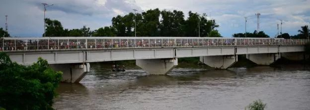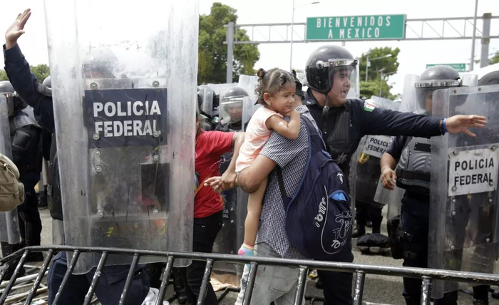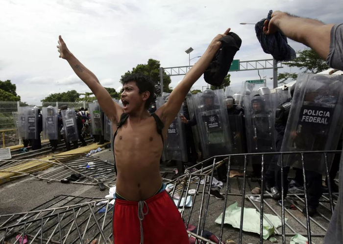 墨西哥最终艰难关闭了边境大门,警方通过扩音器高呼“请停止进攻!”,但许多移民依然不甘,有的人跳下河企图游过墨西哥边境,有的则坐在桥上等待。