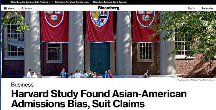 彭博社:诉讼称,关于哈佛大学的报告发现对亚裔美国学生录取存偏见