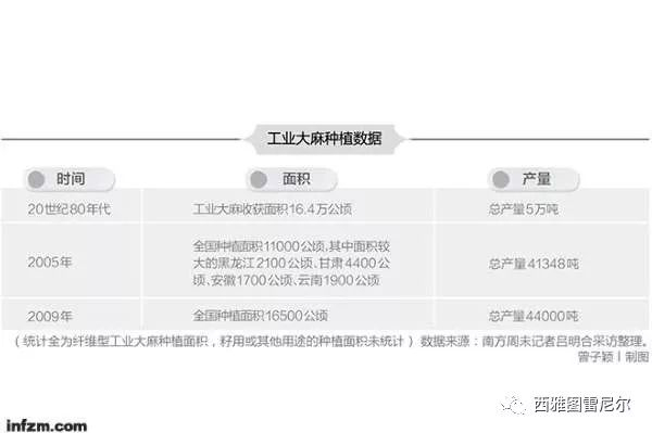 根据《中国农业统计年鉴》和联合国粮农组织的统计数字显示,中国已是工业大麻种植面积最大的国家,种植面积占全世界一半左右。世界知识产权组织的统计称,全球606项涉及大麻的专利中,有309项来源于中国企业和个人。