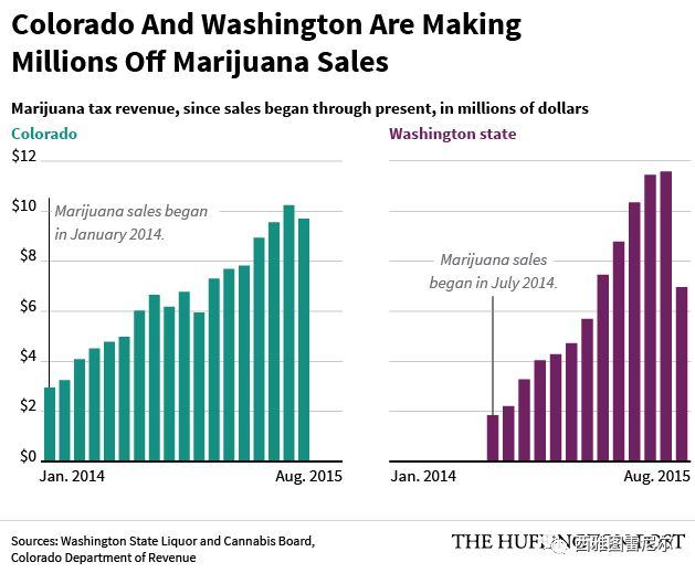 推动大麻合法化背后打一大势力就是一批利欲熏心的资本和政府。他们以为合法化大麻后能够通过税收挣到一大笔钱。确实在短期之内,少数地方政府和企业挣到了不少钱。比如我们美国苏维埃首都所在地的华盛顿州,以及Colorado州。