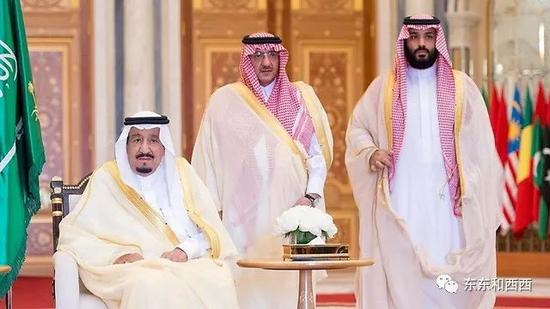 国王的第一个老婆活不过国王,2011年去世,她生的儿子自然在王位争夺中吃亏,第二个老婆又跟国王关系不好闹到离婚,她生的儿子识时务地做生意去了,而第三个老婆,也就是小萨勒曼的妈,她的娘家是跟各个中东国家联姻的Ajman家族,小萨勒曼从出生就背靠外援关系,是父亲最看重的儿子↓↓
