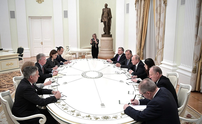 与博尔顿的会谈上,普京先是回顾了自己与特朗普在赫尔辛基举行的峰会。普京说,虽然两人的谈话有时相当强硬,但具有建设性。