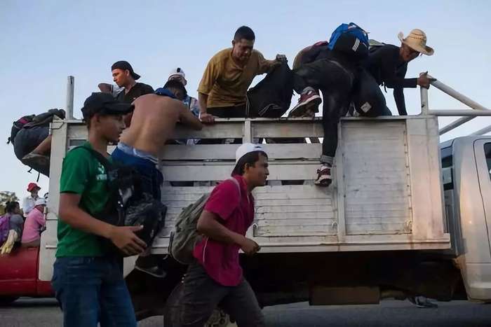 ▲图为正在向墨西哥进发的中美洲难民