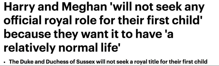 《每日邮报》:哈里和梅根说“将不会为他们的第一个孩子寻求任何官方的王室头衔”,因为他们希望孩子拥有“一个相对普通正常的生活”
