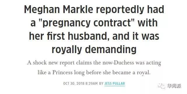 就在昨天,《每日邮报》引述梅根一位友人的话,当年还是“十八线”演员的梅根在嫁给第一任丈夫、制片人恩格尔森(Trevor Engelson)时,曾要求对方签署“怀孕合同”,以保障自己的明星身材不会因怀孕而走样。