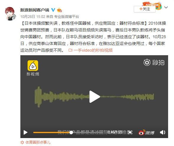 日本体操队频失误怪中国器械 日网友:这锅甩的不道德