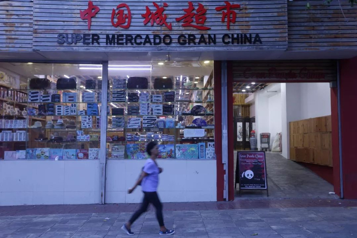 5月1日,在多米尼加共和国首都圣多明各,行人经过“中国城”的一家超市。新华社发